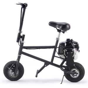 The MotoTec 49cc Gas Mini Bike is the ultimate kid ride! Great for driveway and parking lot fun, cruise around cones and speed through trails with ease. Comes standard with front & rear disc brakes and 10-inch pneumatic street tires.