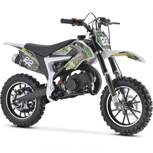 The MotoTec Demon 50cc Kids Dirt Bike - The perfect kids' starter dirt bike. The latest generation of 50cc mini bike engines is faster, torquier, more reliable and even easier to set up and start than ever before. Easy pull start, improved carburetor and all of the standard safety features, support and reliability MotoTec provides.