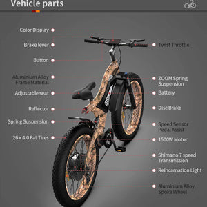 Aostirmotor S18 All Terrain 1500W 48V Full Suspension Mountain Electric Bike - Snakeskin Features:
