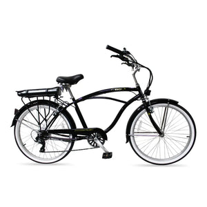 The Micargi Bali Electric Bike is the perfect balance between a beach cruiser and an electric bike. It's perfect for those who love riding bikes but want to take things up a notch and go faster. Whether you're riding at the beach, or around the neighborhood, the Bali is equipped with Shimano 7 speed gears and a powerful 350W front hub motor that is paired with the 48V Samsung lithium-ion battery, so you can go as fast as you want.