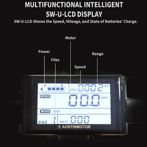 The AOSTIRMOTOR S07-B Fat Tire Electric Mountain Bike guarantees comfort and control on any type of terrain. With front & rear disc brakes, plus extra-wide fat tires, the aluminum frame is able to withstand whatever adventure awaits you! The LCD display is included at no additional charge, is easy to use, and keeps you up to date with your current speed, distance, and battery level.