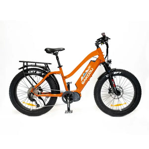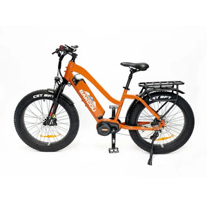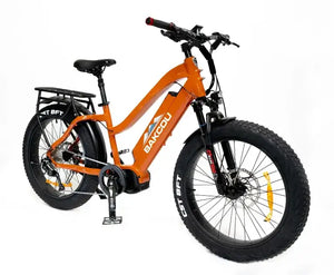 The Bakcou Mule Step Through (ST) 24" Fat Tire Electric Hunting Bike is also designed for conquering greater heights with the help of Shimano Alivio Hill-Climbing 9-speed gearing that is paired with the powerful 750W Bafang Motor which can go up to a max output of 1500W! With its torque-sensing Smart Motor - the Bakcou Mule hunting bicycle is known as the "Diesel Engine" of eBike Motors. This e-bike also comes with the largest eBike battery option on the market at (1,200 Watt hours)!