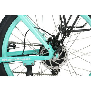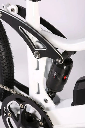 This bike comes with everything Aluminum - every bolt, every nut, and every spoke. That means no rust! The 100% hand welded lightweight aluminum frame bicycle has Atlus Shimano 9-Speed Gears & Shifting System, Suntour XCT Front Suspension & KS Rear Shock Suspension, aluminum rims with quick release axle on the front, and a waterproof quick disconnect on the rear.