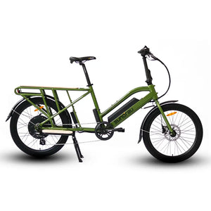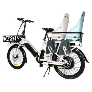 Enjoy the new and improved Eunorau MAX-CARGO commuter electric bike. This full-featured cargo bike comes with sturdy Kenda 24 x 2.4 tires for a comfortable ride and a powerful 750W ENA rear hub motor which is paired with a 48V Samsung battery. This bike is designed to easily transport your extra passenger and is also perfect for food delivery, family, and even for cargo.