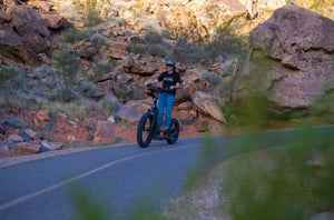 High-powered and built for the backcountry, the Timberwolf Electric Scooter lives up to its name. The new, all-terrain scooter can take you anywhere you want to go. It is built with a Bafang 750 Watt rear hub motor, like our Flatlander eBike, and can carry up to 300 pounds.
