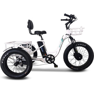 You can now fashionably cruise with this Emojo Caddy Pro Fat Tire Trike around the golf course, beach, city streets, and even on the trails. The Emojo Caddy Pro Trike comes with a powerful 500W front hub motor, paired with a 48V long-life battery that also has a convenient USB charging port. This Electric Trike will allow you to haul up to 330 lbs of rider and gear in the front and large rear racks while delivering an impressive 35 miles per charge!