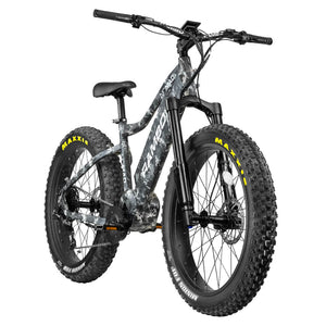The Rambo Nomad 750W XPC11 TrueTimber Viper Western Camo Xtreme Performance Electric bike has all the power and torque of the traditional 750 Rambo Bikes but with an added upgrade front suspension for added off-road adventures. Still designed and equipped for the hard-core hunter and features Rambo intelligent power control. Check game cameras, enter your stand in stealth mode, travel whisper quiet deep into the woods, scout your land without putting pressure on your game. Comes in TrueTimber Viper Viper Western Camo for ultimate concealment and style.