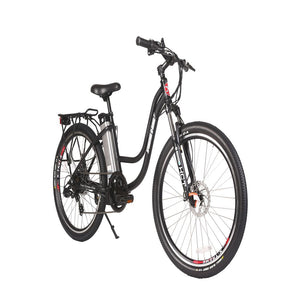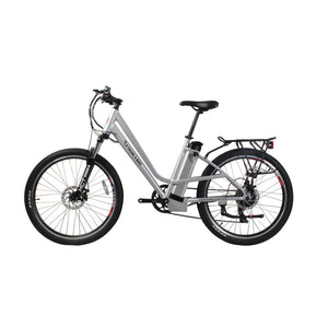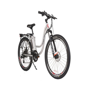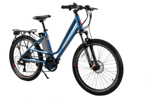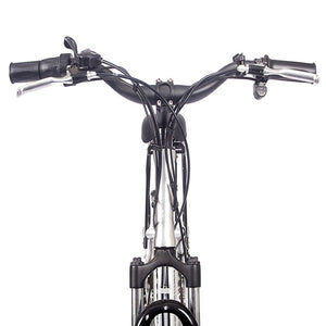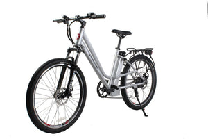 The Trail Climber Elite is a Lithium Battery powered Electric Bicycle with a step-through frame, running on a 300 Watt Zero Resistance rear hub motor. Made with all top-of-the-line components this model includes a 7 Speed Shimano Tourney® Gears & Shifter System, 7 Lightweight Lithium 24 Volt 10.4 Amp (previously only 8 amps) LiPo4 Batteries, a 100% Aluminum Alloy Frame, fully Adjustable Seat, and a Suntour hydraulic front fork.