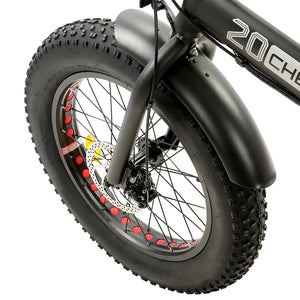This electric bicycle also has both pedal assist and throttle modes. The pedal assists and throttle of the Fat 20" 48V EBike feature five-speed modes to choose from, which meets the diverse needs for speed for each rider. The battery also got an upgrade (from 12Ah to 13Ah). In addition, the bike comes with compact 20" x 4" tires for your most comfortable ride experience on all kinds of terrain.