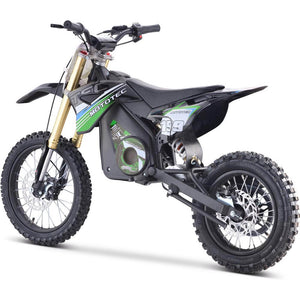 Introducing the new MotoTec 48v 1800w Lithium Pro Electric Dirt Bike! Great for driveway, backyard, or dirt track racing. It comes standard with front & rear suspension, and front & rear brakes—three adjustments for Throttle Response and Top Speed. The Lithium battery is substantially lighter, offers more performance, and most importantly a longer ride time. In optimum conditions, up to 9 miles per charge.