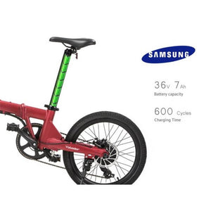 The seat-post battery is removable so you can either charge it on the bike or separately in your room. The battery is a 36V 7Ah Samsung Battery capacity which charges in 3 Hours.