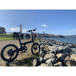 The Qualisports Volador Electric Folding Bike is a popular EBike choice for commuters that want to bring the bike on public transportation, for camping trips, or even for easy storage in your apartment or condo. It is built with a sturdy aluminum grade 6061-grade frame and fork capable of supporting 220 lbs. It is also designed with an adjustable height seat to support riders from 5" to 6'3".