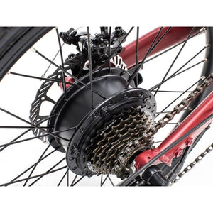 Customized 350W high speed geared brushless motor with enough pulling power so you can effortlessly conquer an 18° climb. Brushless motors are smoother, more efficient, and have no magnetic drag when you ride the bike without any power.
