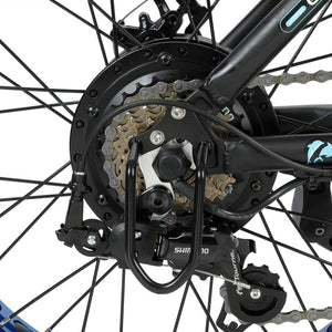 Aluminum Alloy Frame: The frame is made from a sturdy aluminum alloy material. This makes the bike robust enough to withstand rough terrains and a heavyweight of 200 pounds.