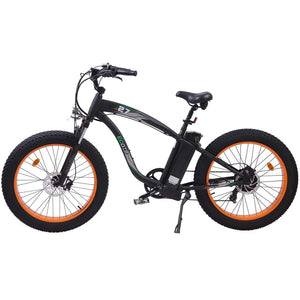 Get the powerful, sturdy, and stylish Ecotric Hammer Fat Tire Electric bicycle (UL Certified) that features a vintage ‘70s design. The hammer bikes come in three color variations — Matt Black, Blue, and Orange. This gives you more than one alternative to choose from to match your personal style.